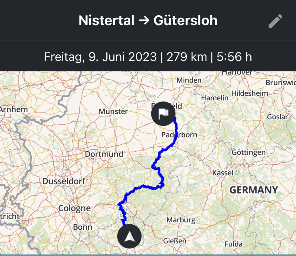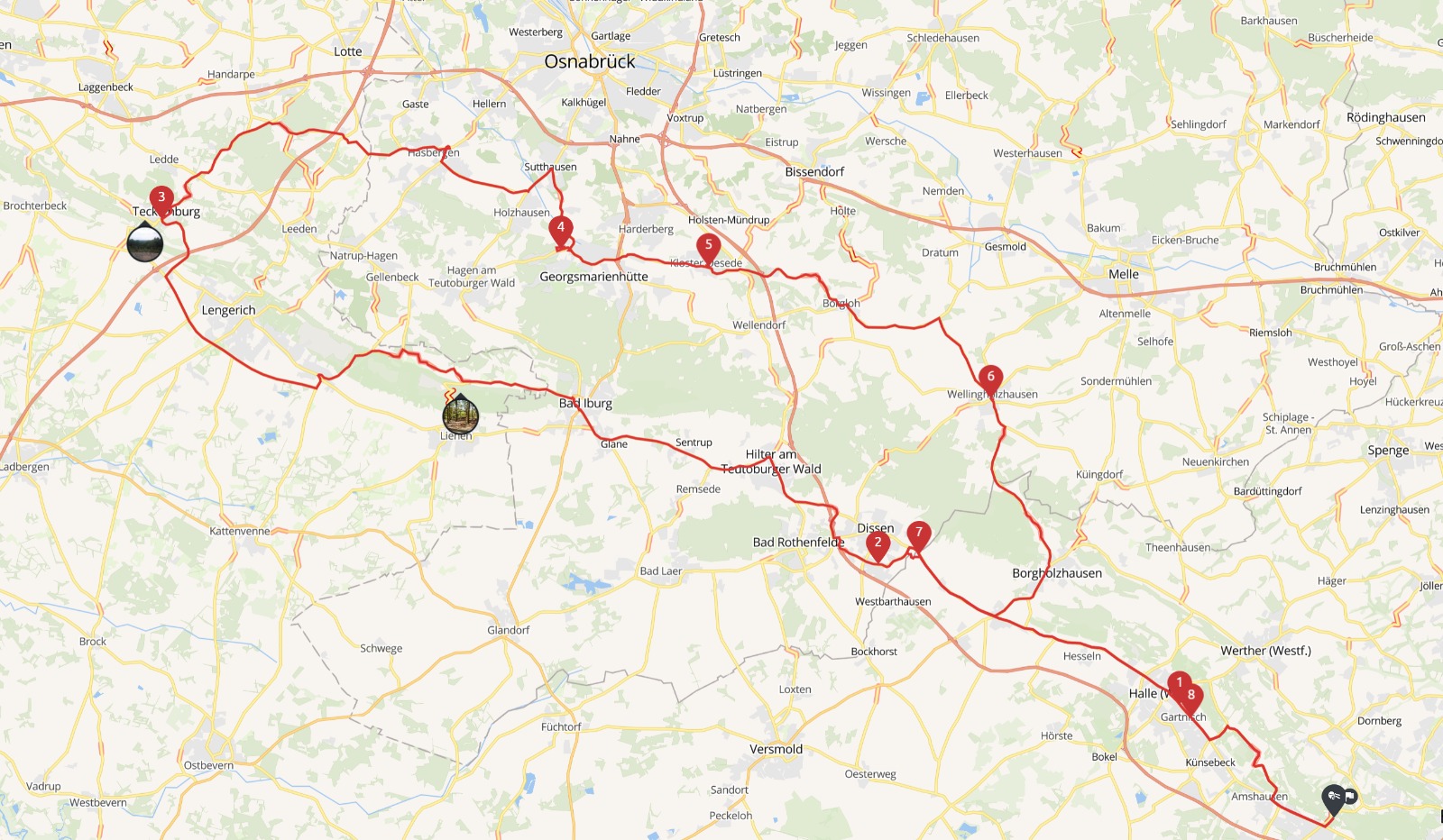 Tourguide Geert führte uns gute 285 KM über Lemgo bis nach Hannoversch Münden. Einige Zwischenstopps und Fährfahrten später waren alle wieder heil Zuhause angekommen.