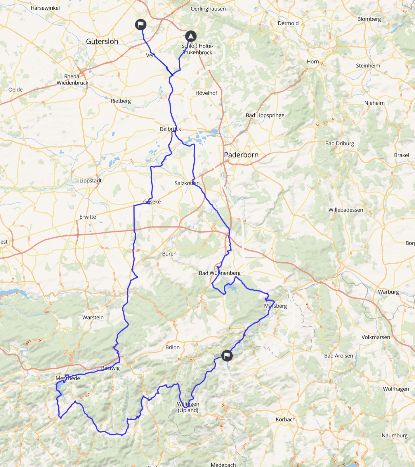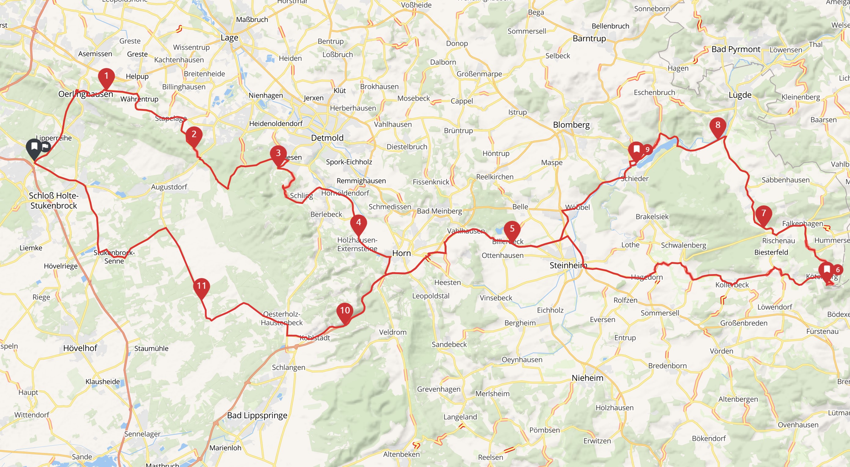 Tourguide Norbert führte uns gute 160 KM über Horn und Steinheim zum Köterberg. Kurze Pause und weiter ging es nach Schieder-Schwalenberg. Nach Kaffee und Kuchen ging es über Altenbeken zurück nach Bielefeld.