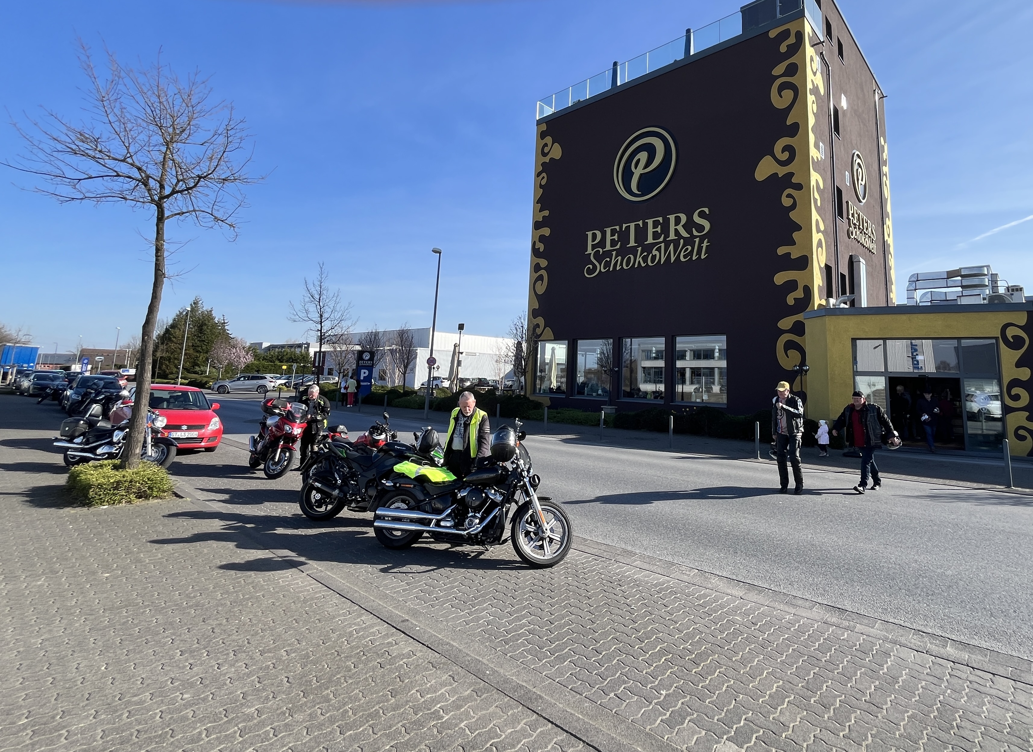 Die Saisoneröffnung 2024. Bei bestem Wetter und 15-16 Grad ging es mit 11 Bikern zur Wewelsburg. Nach einer kurzen Pause ging es über Warstein nach Lippstadt zu Peter's Schokowelt. Kurz leckeren Kaffee und Törtchen und schon geht es weiter. Der Rückweg ging über Oelde und Clarholz zurück nach Bielefeld. Nach gut 210 KM waren alle glücklich mal wieder gefahren zu sein.