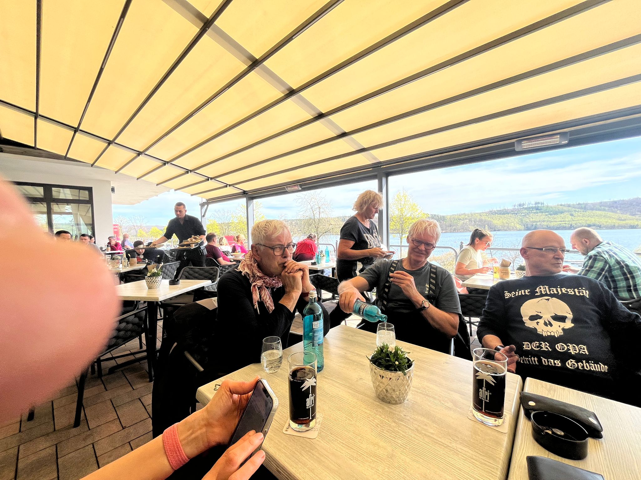 21.05.2023 mit Tourguide Ralf M. ab Bielefeld Sennestadt (Moe's Diner) über Delbrück und Wünnenberg zur Aabachtalsperre. Hier gab es die erste Pause zum Füße vertreten. Danach ging es weiter über Marsberg und den Diemelsee zum Hennesee. Hier wurde im H1 Am See Pause gemacht und lecker Kuchen gegessen. Danach machten wir uns über Bestwig und Geseke auf den Rückweg. Insgesamt ca 250 KM an diesem Tag.