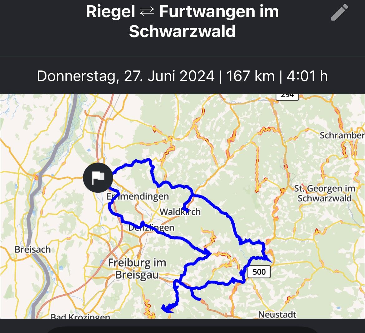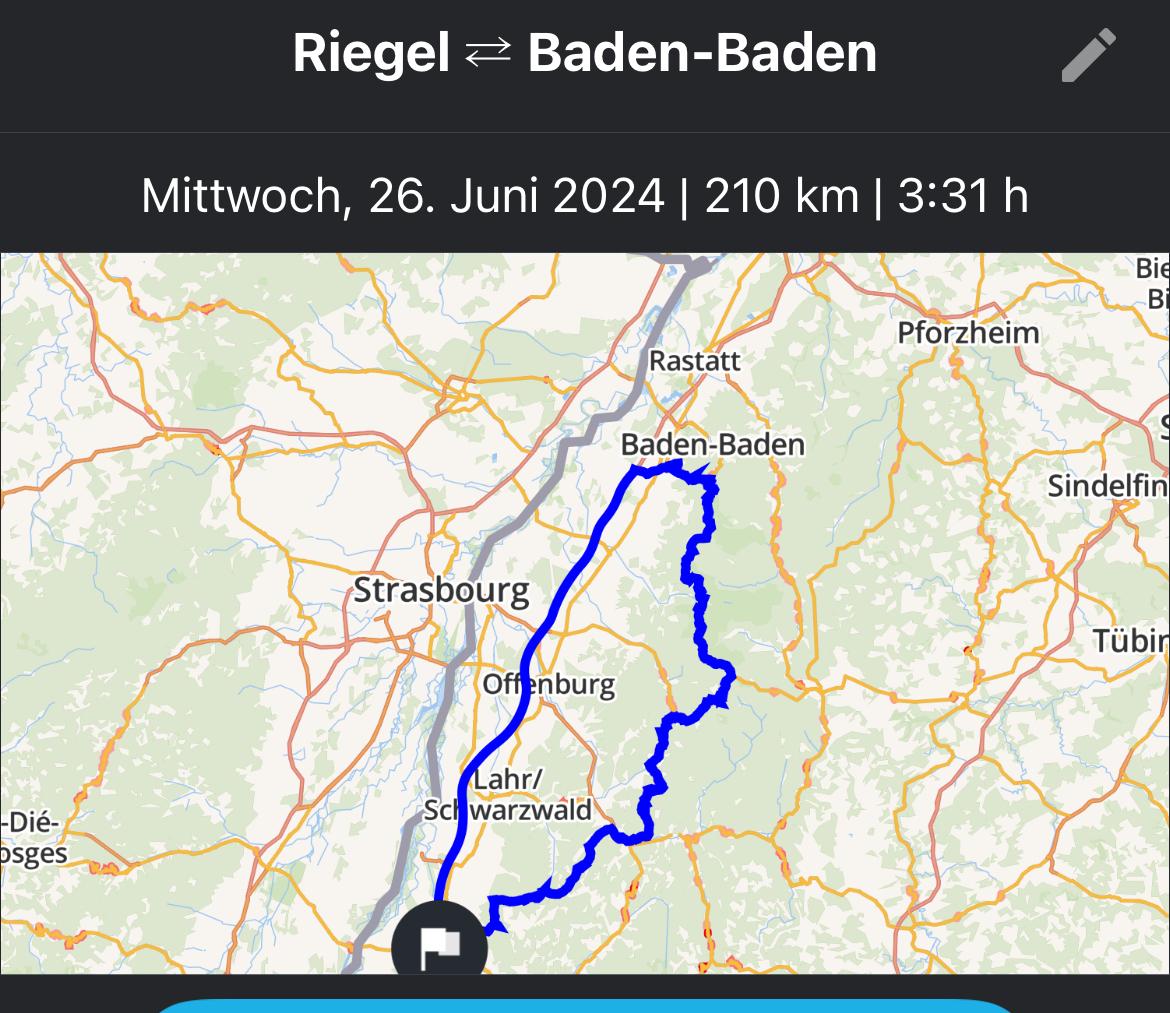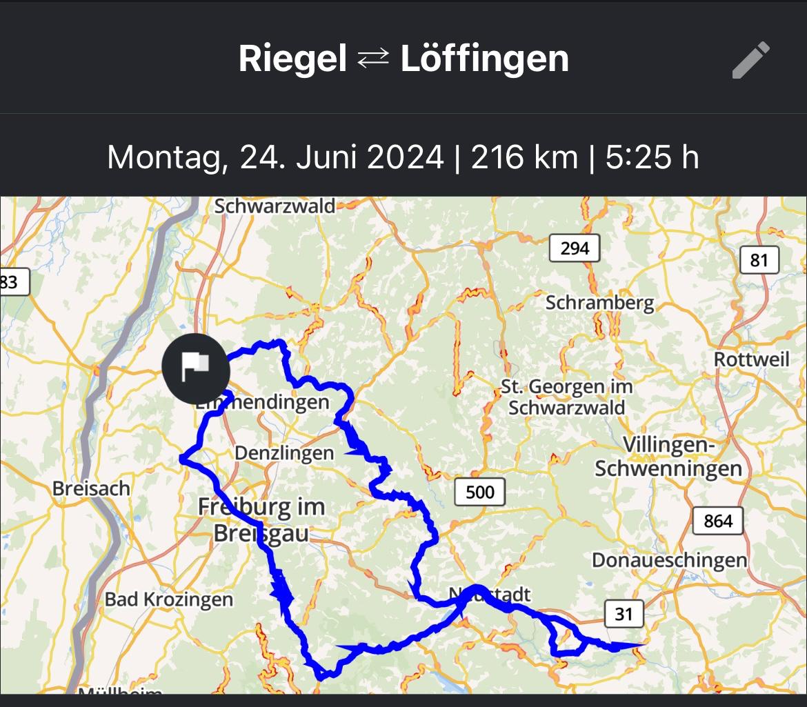 Die Sommertour 2024 führte uns in den Schwarzwald. Ausgangspunkt unserere Touren war das Hotel Kopf in Riegel am Kaiserstuhl. Ein gutes Hotel. Mit dem Wetter hatten wir viel Glück. Trotz häufig vorhergesagtem Gewitter und Regen sind wir trocken geblieben. Die Touren führten uns in die nähere Umgebung und in die Vogesen. Ein sehr schönes Gebiet für Motorradtouren.