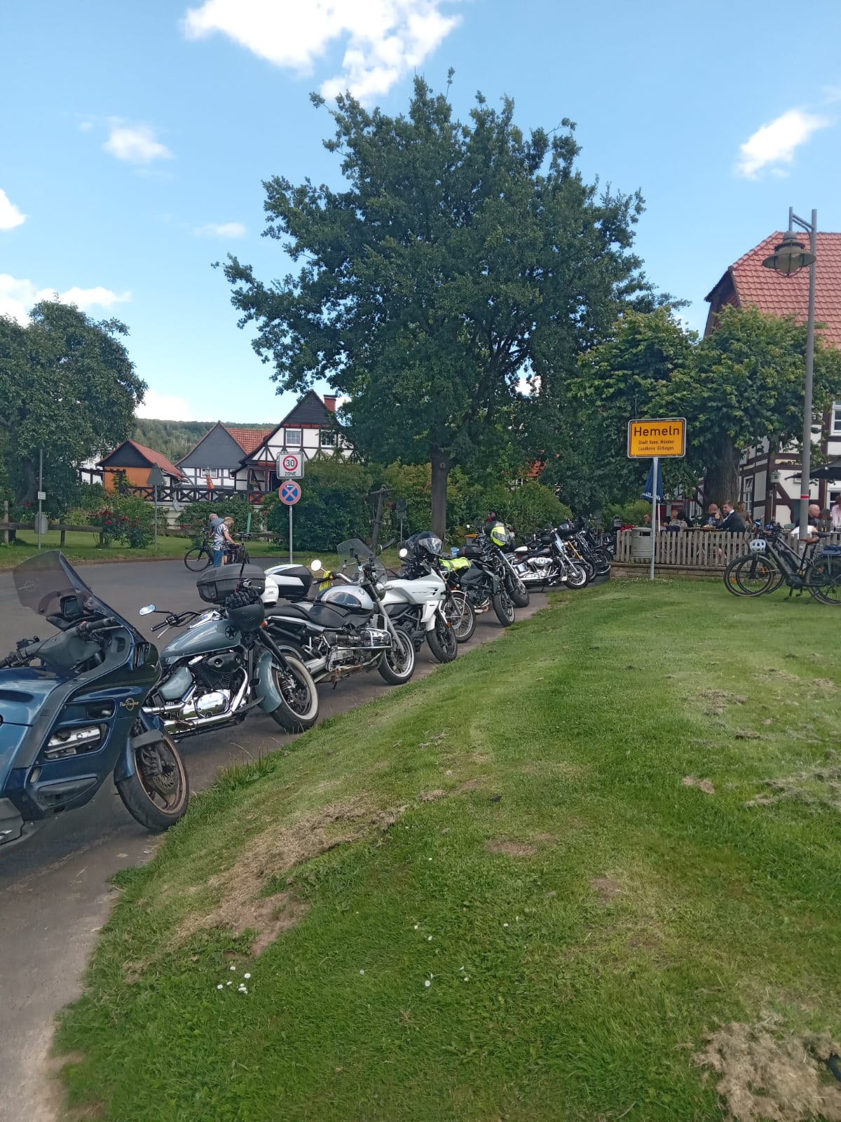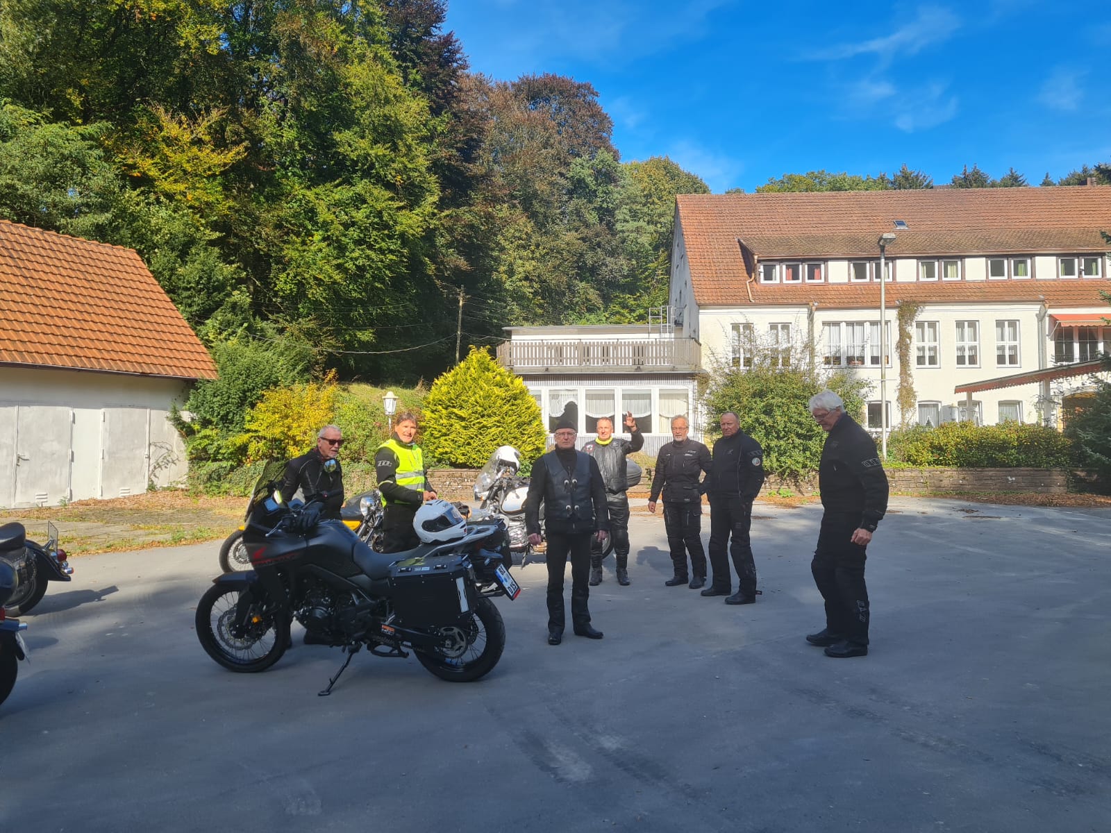 Tourguides Ralf M, Petra und Hartmut führten 18 Mitfahrer in 2 Gruppen in das Weserbergland und den Solling. Circa 250 km mit Zwischenstationen im Grohnder Fährhaus und in der Villa Löwenherz.