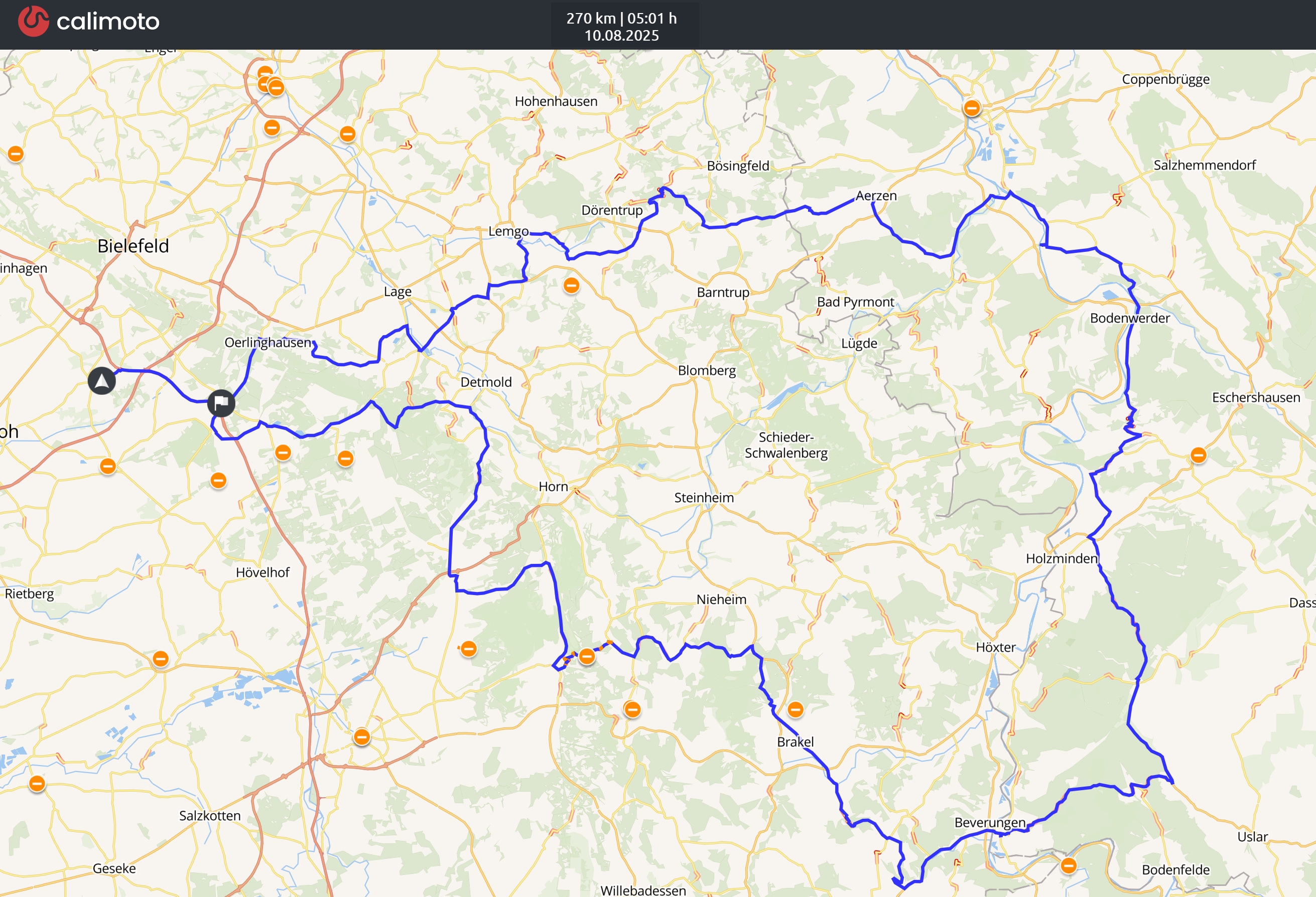 21.08.2022 mit Tourguide Ralf M. Mit 11 Mitfahrern ab Bielefeld über Talle, Silixen Richtung Rinteln, dort erste Pause im BODEGA BEACH CLUB und dann ging es weiter über Uchtdorf, Goldbeck, Bösingfeld, Schieder, von dort sind Heinz und Gerhard Richtung Heimat gefahren. Für den Rest der Truppe ging es weiter nach Polle, an der Weser die zweite Pause, dann Rückfahrt über Schwalenberg, Hiddessen, nach Bielefeld. Insgesamt sind wir ca. 230 Km gefahren und waren gut sechs Stunden unterwegs. Es war eine schöne Tour.